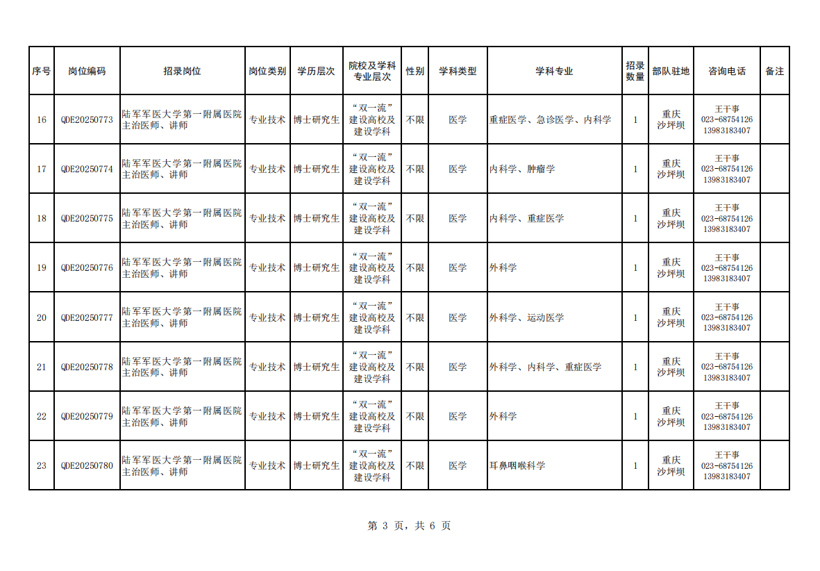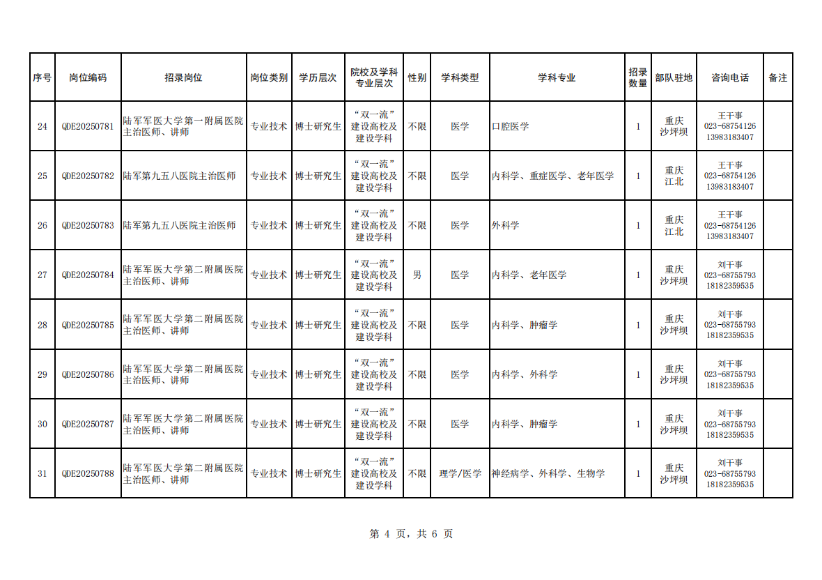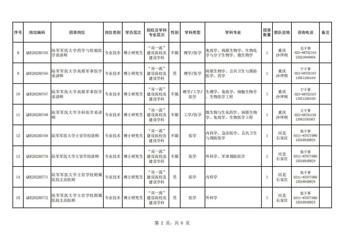 陆军军医大学士官学校将于2025年9月18日来山东大学趵突泉校区开展招聘宣讲活动,感兴趣的同学可以扫描下方二维码进群咨询了解,相关招聘岗位计划附后。