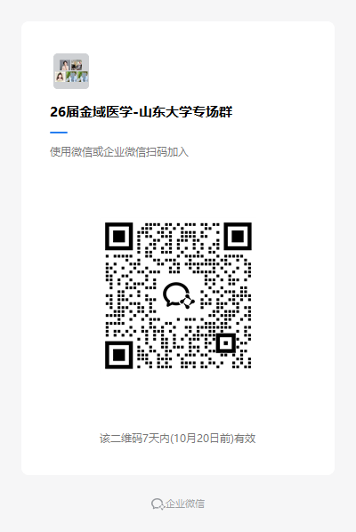 金域医学集团将于2025年10月21日下午14:00-16:00在山东大学趵突泉校区图书馆东101d举行招聘宣讲会,欢迎各年级同学扫描下方二维码、到现场交流了解。