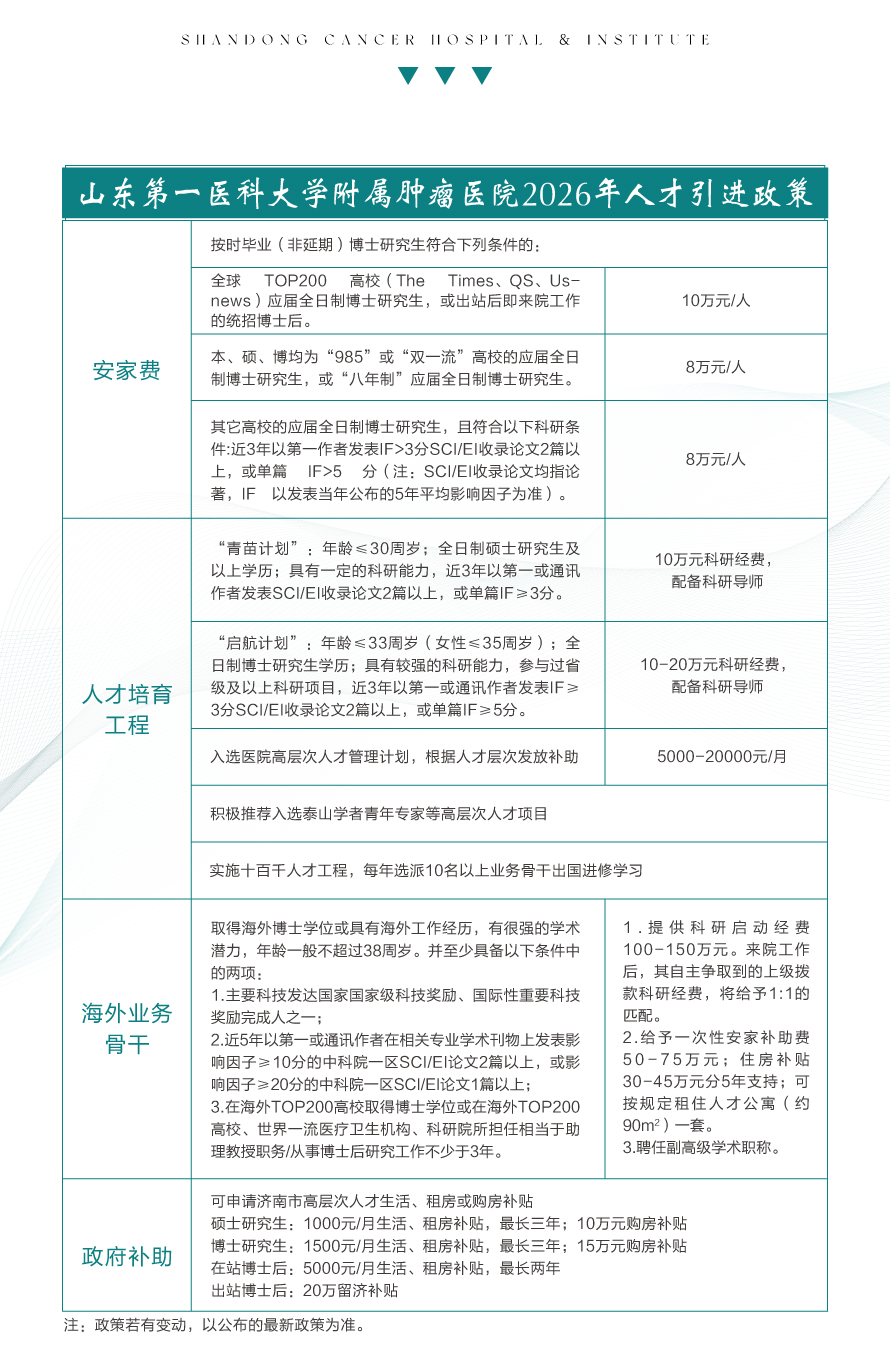 山东第一医科大学附属肿瘤医院2026年招聘正式启动
